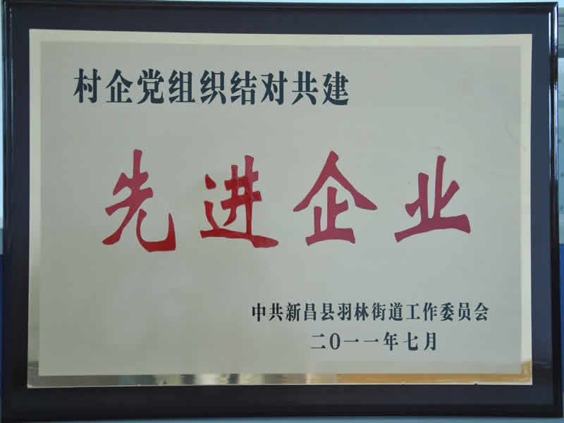 6月28日,建黨90周年活動前夕,新昌縣羽林街道組織開展評優表彰活動,會上對2010年在推進全街道改革、發展、穩定中做出成績的10個先進黨組織、12家先進村企黨建共建企業,100名優秀共產黨員予以表彰。公司榮膺先進村企黨建共建企業,安全生產管理部黃玉峰和研發中心陳見陽被評為優秀共產黨員。