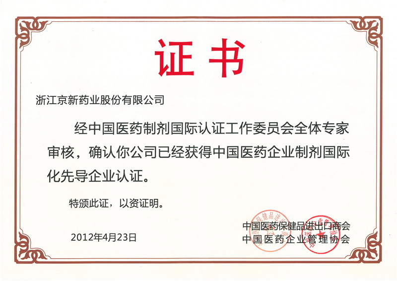 4月23日,第67屆全國藥品交易會上舉辦了2012中國醫藥企業營銷高峰論壇,論壇正式發布了“中國醫藥國際化制劑認證企業第一批先導性企業”名單,共有15家醫藥企業獲此殊榮,京新藥業名列其中。